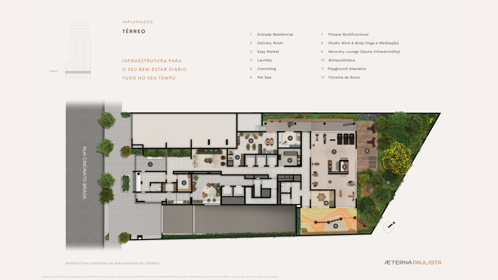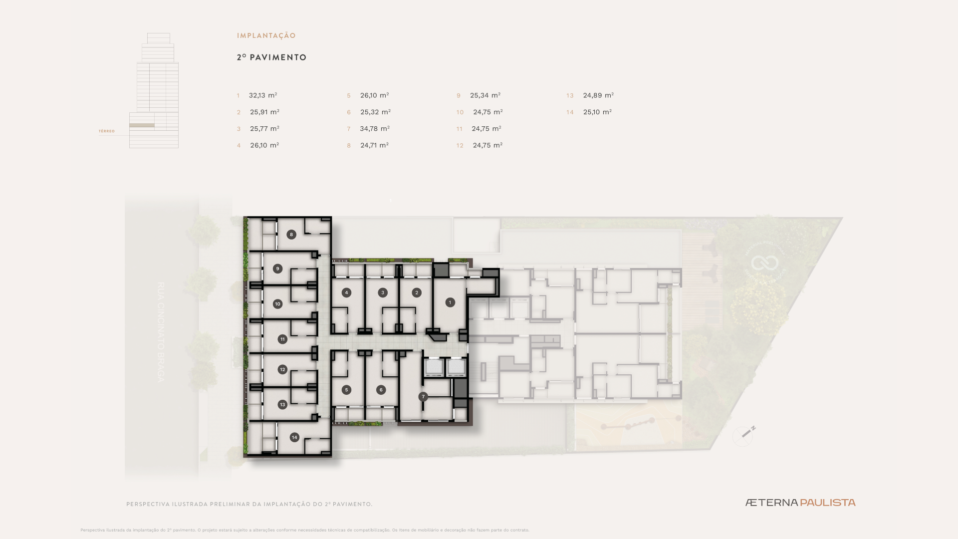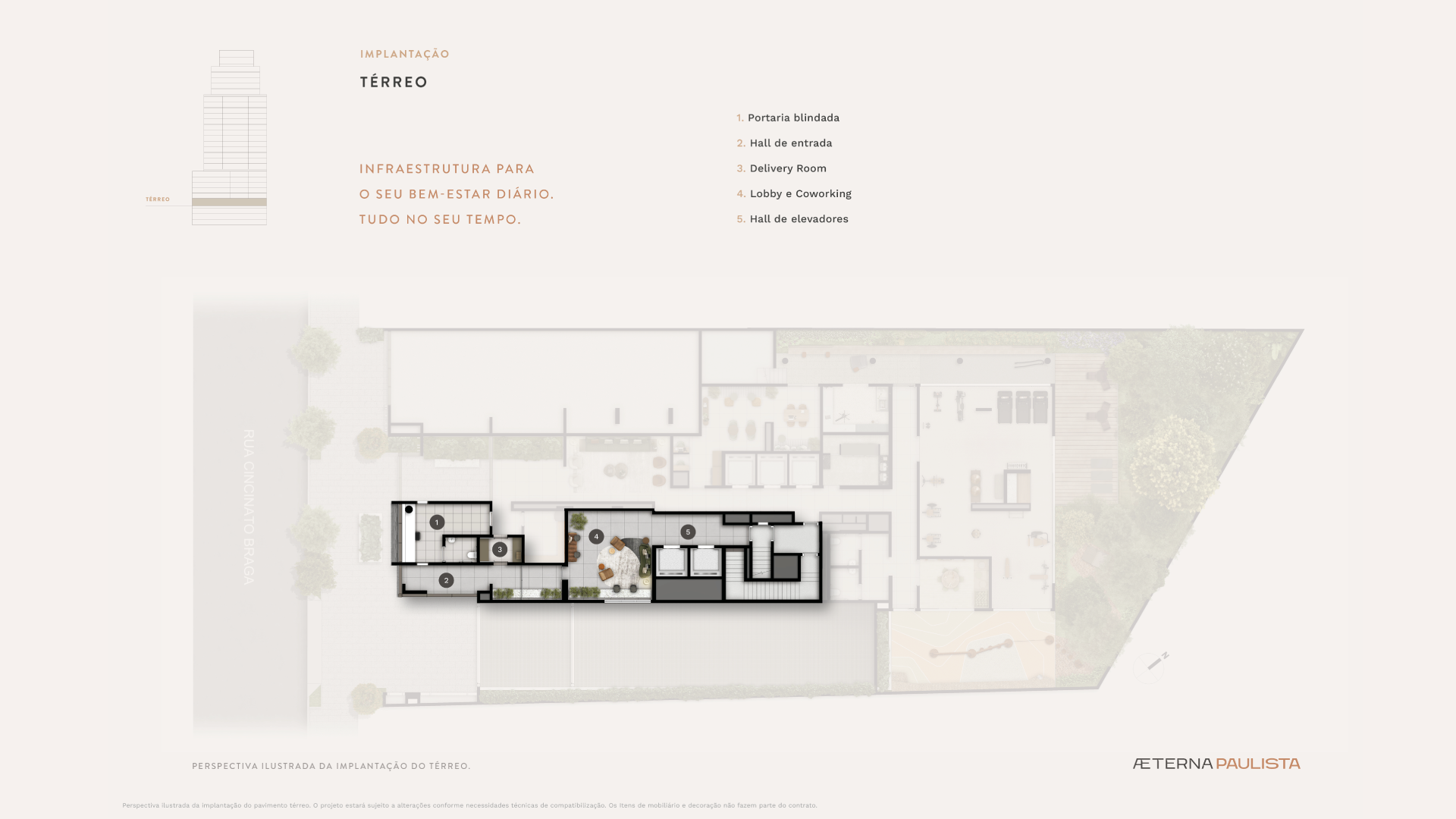 Edifício AETERNA Paulista – Incorporadora: Cincinato08 SPE Empreendimento Imobiliário Ltda. Incorporação registrada em 26/03/2025 sob nº R. 03, matrícula n° 210.589, no 4° Cartório de Registro de Imóveis de São Paulo/SP. Alvará de aprovação de edificação nova n° 34231-23-SP_ALV e Apostilado, processo SEI 1020.2023/0024166-7, publicado em 16/12/2024. Imagens ilustrativas, sem escala e sujeitas a alterações. Projeto executivo em desenvolvimento. As medidas das plantas indicam distâncias face a face entre paredes. Móveis e utensílios são sugestões de decoração. O empreendimento e suas áreas serão entregues conforme Memorial Descritivo e projetos executivos. A vegetação e o paisagismo são ilustrativos e apresentam árvores em porte adulto de referência. Na entrega do empreendimento, a vegetação poderá apresentar diferenças de tamanho e porte. Intermediação: Zero Oito Consultoria Imobiliária Ltda. – CRECI/SP Nº 042169-J. Importante: valores de corretagem pagos diretamente pelo comprador ao corretor/imobiliária, sem acréscimo ao valor ofertado.