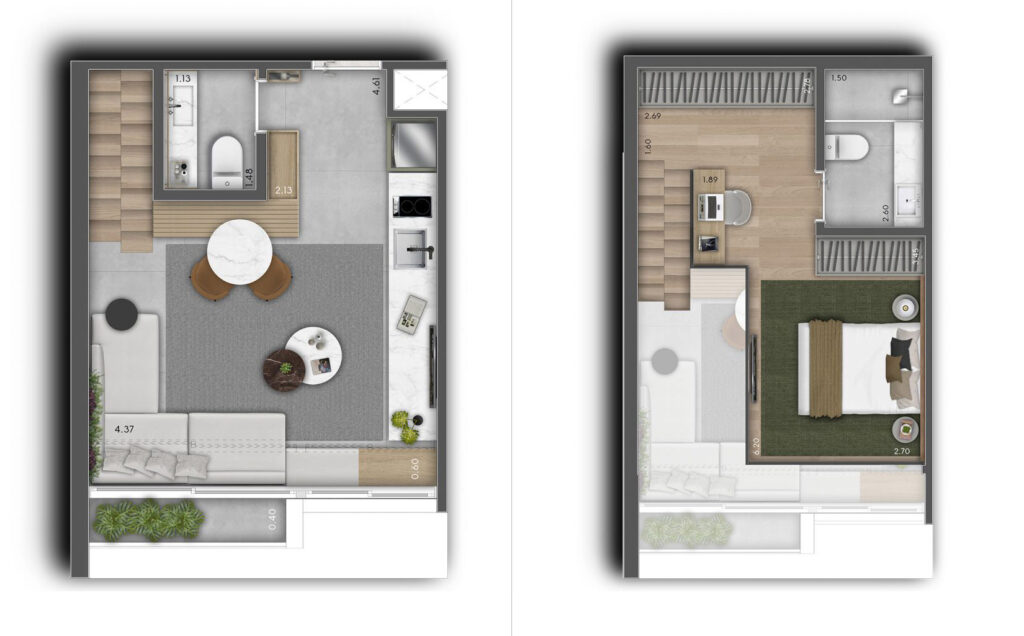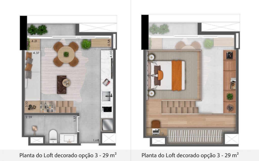 Studios de 29 m² | Loft 27 m² | Sky Duplex 48m² | Loja 269m²